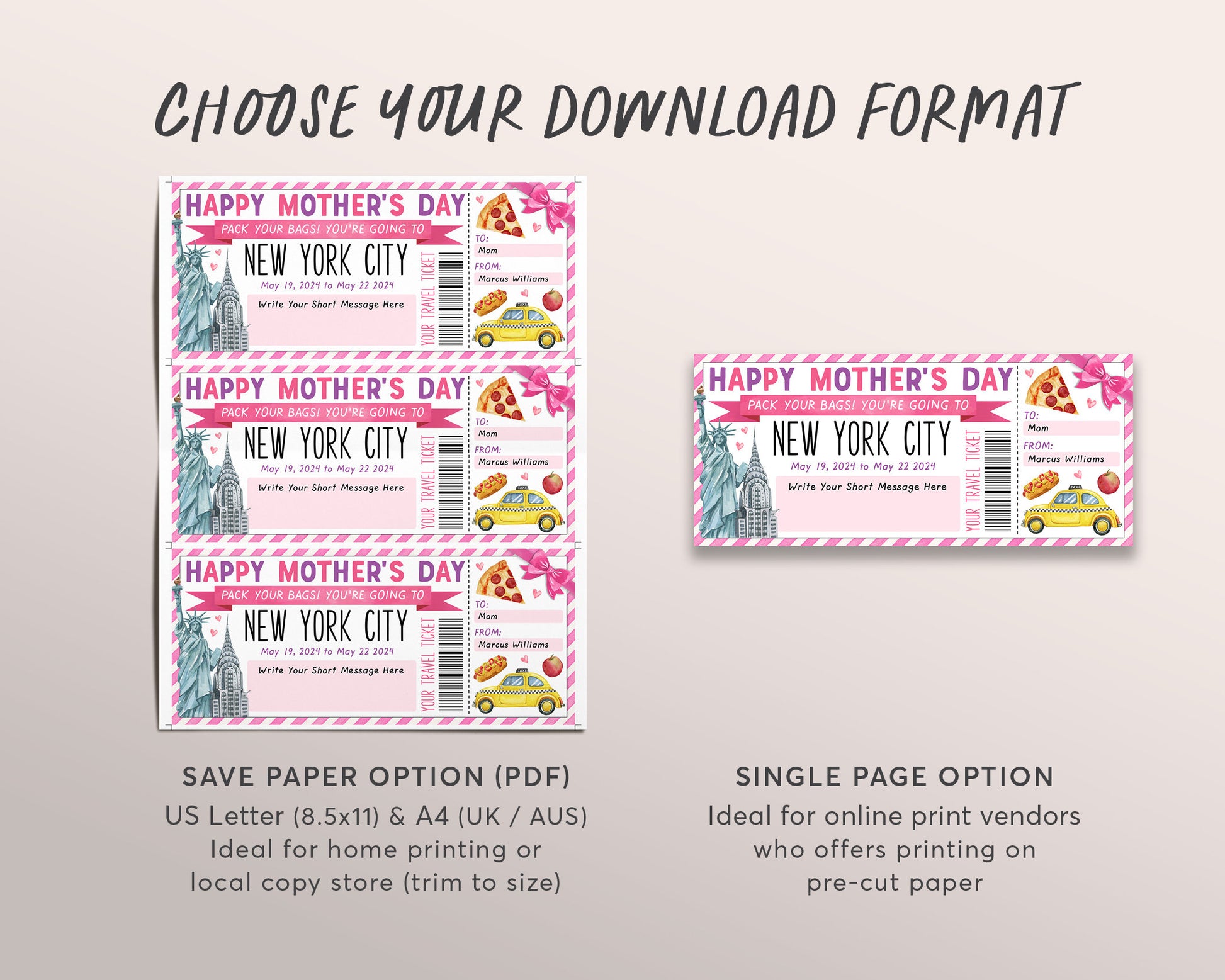 Source : www.redbubble.comMothers Day New York City Trip Ticket Editable Template, Surprise
